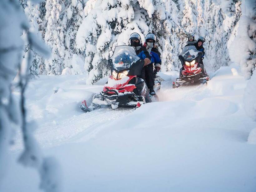 Join an exciting snowmobile safari in Ylläs, perfect for beginners and experienced riders alike. Ride through snowy forests and across frozen lakes with a professional guide, and enjoy a warm drink during your Arctic adventure.